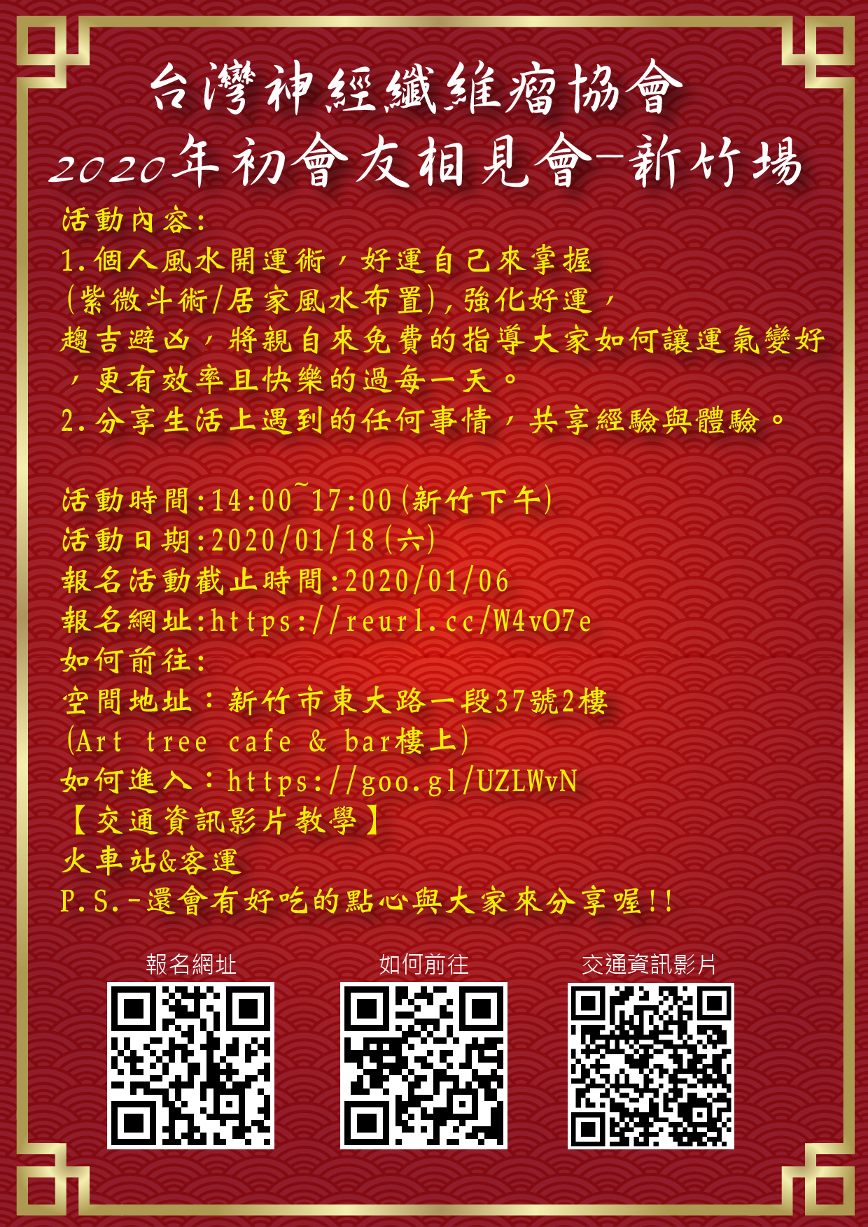 台灣神經纖維瘤協會 2020年初會友相見會-新竹場(活動時間2020/01/18)